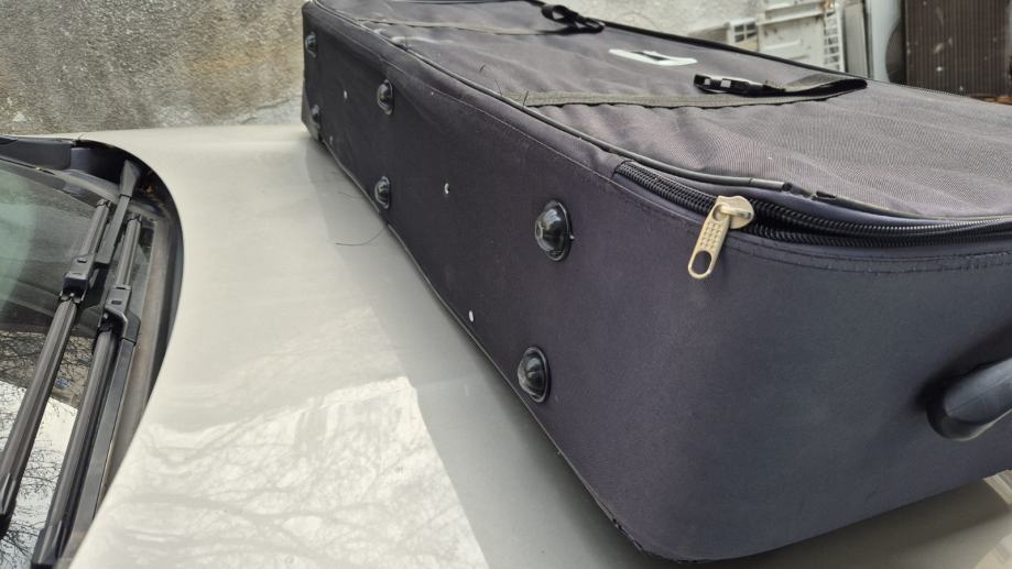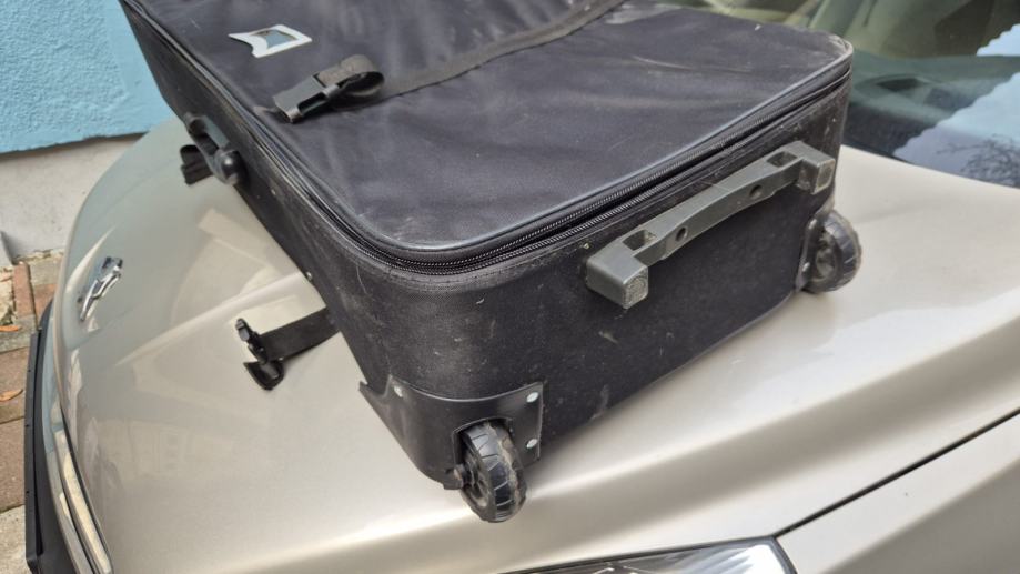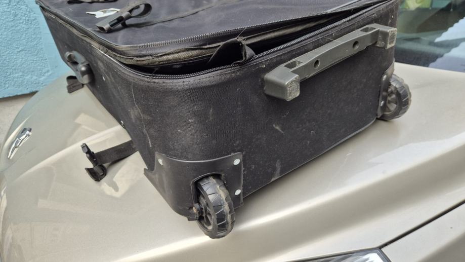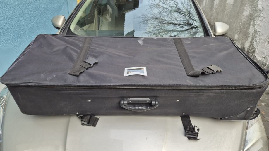 Prodajem veliku putnu torbu-kofer crne boje, izrađenu od tekstilnog materijala. Radi se o izrazito prostornoj i dugačkoj torbi pravokutnog oblika, opremljenom četiri kotačića za lakše vuče te ručkom za nošenje. Sa strane se nalazi i dodatni remen za nošenje preko ramena ili za pričvršćivanje. Zatvaranje je na zip s vanjske strane, a torba ima i plastičnu naljepnicu za identifikaciju prtljage. Dimenzijama se ističe kao jedna od većih putnih torbi, dim 120x45x22cm, pogodna za duža putovanja ili transport glomaznijih predmeta.
