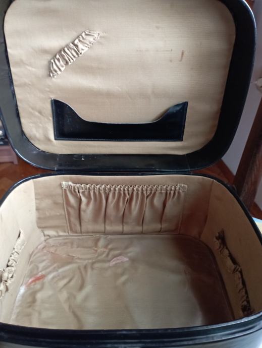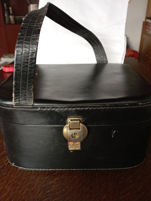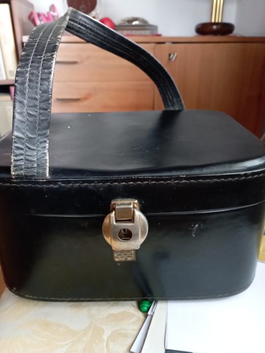 Neseser, kupljen 1972.god. Crna koža, čvrst, dimenzije 30x23, visina 16 cm! Unutra malo oštećenje (iscurio aceton)