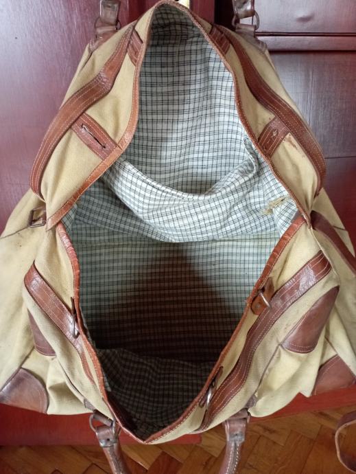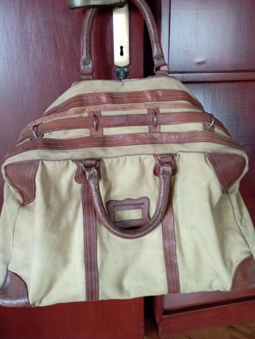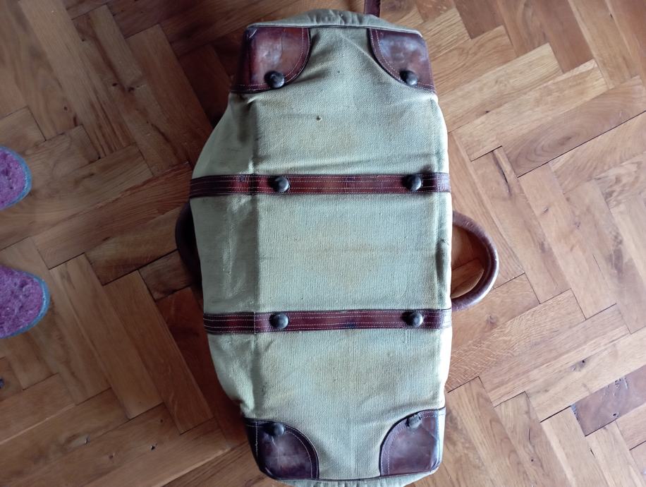 Vintage putna torba iz 60-tih godina donesena iz Indije i od tada nije korištena! Krem čvrsto platno, a čoškovi i rubovi ojačani kožom i zakovicama!!