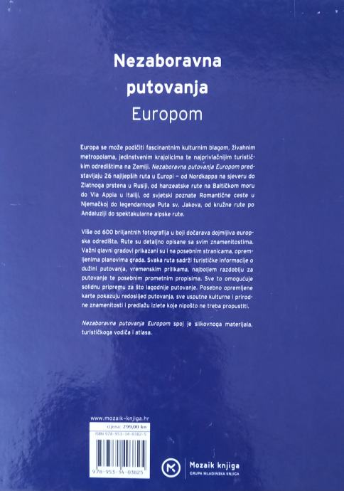 Knjiga sadrži dvadeset i šest najljepših turističkih putovanja po zemljama Europe koje su predstavljene svojim prirodnim, povijesnim i kulturnim znamenitostima. Uz to, u knjizi su i sve važne turističke informacije, planovi gradova i karte putovanja.