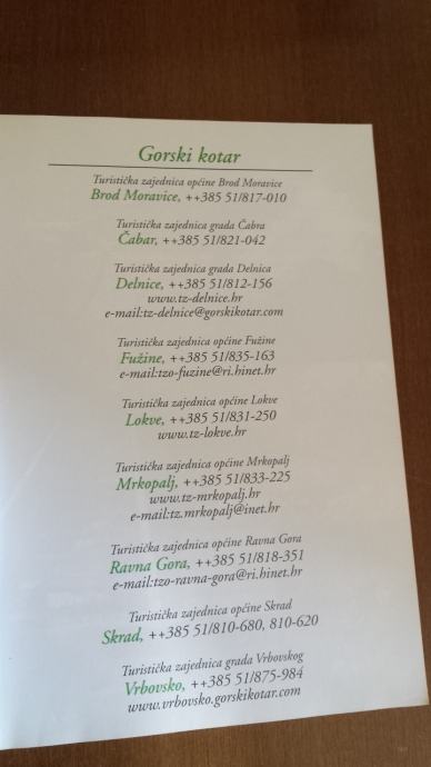 turistički vodič kroz Gorski kotar i pripadajuća mjesta: Čabar, Delnice, Lokve, Fužine, Mrkopalj, Skrad, Ravna Gora, Vrbovsko, Brod Moravice.