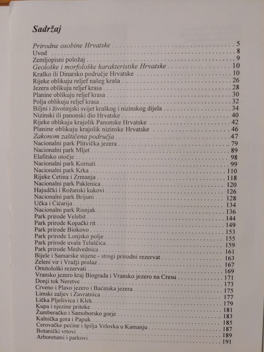 Knjiga Ante Pelivana podijeljena je u dva dijela. Prvi govori o prirodnim osobinama Hrvatske, tj. o njenim geološkim i morfološkim karakteristikama. Drugi dio posvećen je zakonom zaštićenim područjima, te zakonom zaštićenim biljnim i životinjskim vrstama. U ovom su dijelu ukratko opisani hrvatski nacionalni parkovi, parkovi prirode, rezervati, jezera, rijeke, gorja, botanički vrtovi i arboretumi. Knjiga je obogaćena fotografijama prirodnih ljepota Hrvatske.