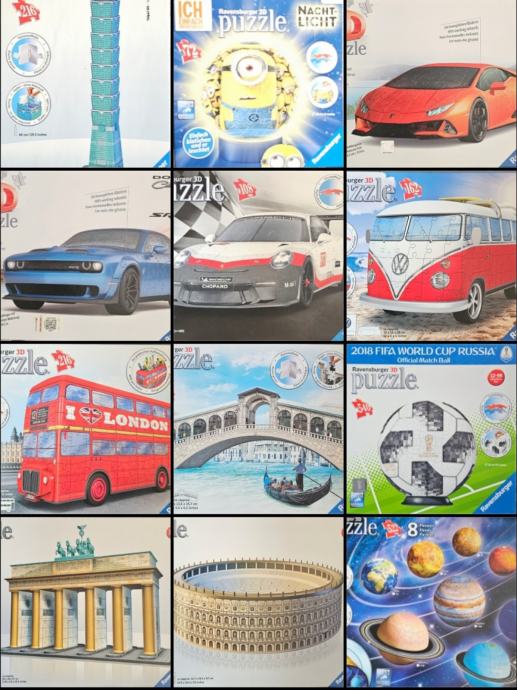 Prodajem sve puzle sa slika, cijena je od 10e do 20e ovisno o odabiru puzla. Puzle su bile na polici slozene ja sam ih rastavio i zapakirao u original kutije.