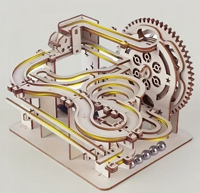 Set staze sa zupčanicima, rampama i čeličnim kuglicama, ručno upravljanje, interaktivni sustav zupčanika, čvrsti drveni dijelovi, dizajn staze s beskonačnom petljom | Idealno za Božić i Dan zahvalnosti.