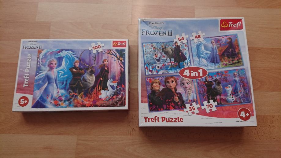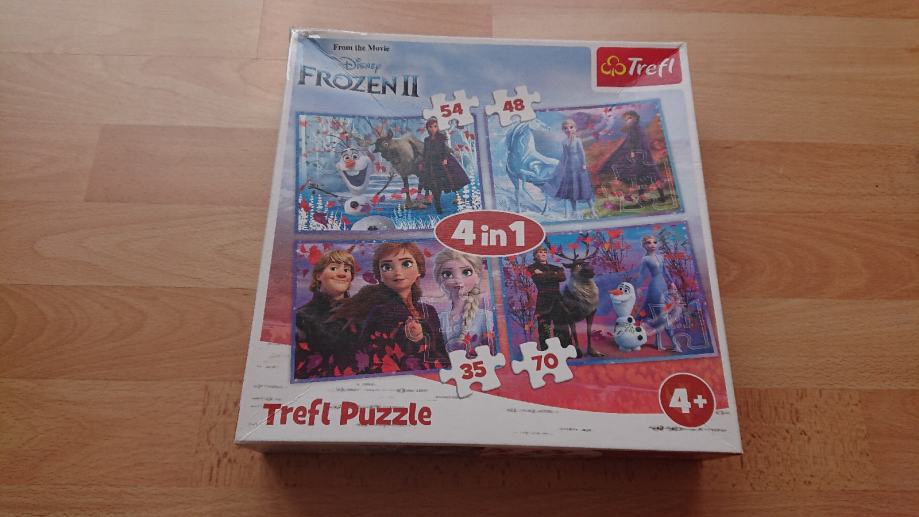 Frozen 2 puzzle sa 4 slike tj slagalice - od 70 kom, 54 kom, 48 kom i 35 kom, uzrast 4+ godina, cijena 8 EUR.