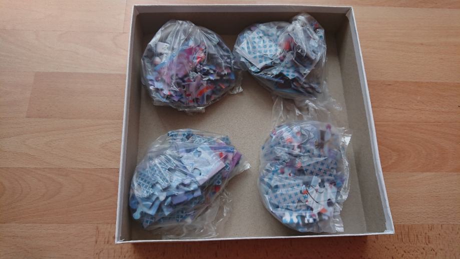 Puzzle su sve na broju i dolaze sa original kutijama (kutije imaju neke tragove korištenja, ne mogu proći kao poklon, a puzzle su odlično očuvane).