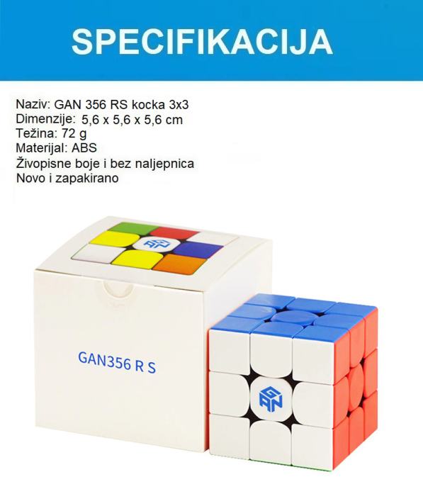 Originalna rubikova kocka GAN 356 RS 3x3x3 specifikacije: