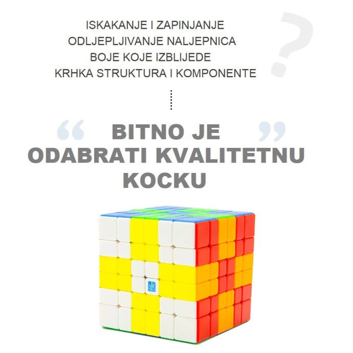 Premium kvalitete, sa posebnim ćelijama koje spriječavaju zapinjanje i štopanje. Jako brzo i jednostavno se okreće zahvaljujući magnetima poredanim između stjenki rubova. Pločice nemaju naljepnice i nije moguće varati. U paketu dođu i mini upute kako složiti kocku.
