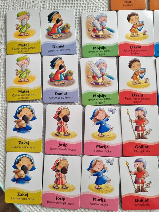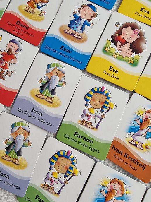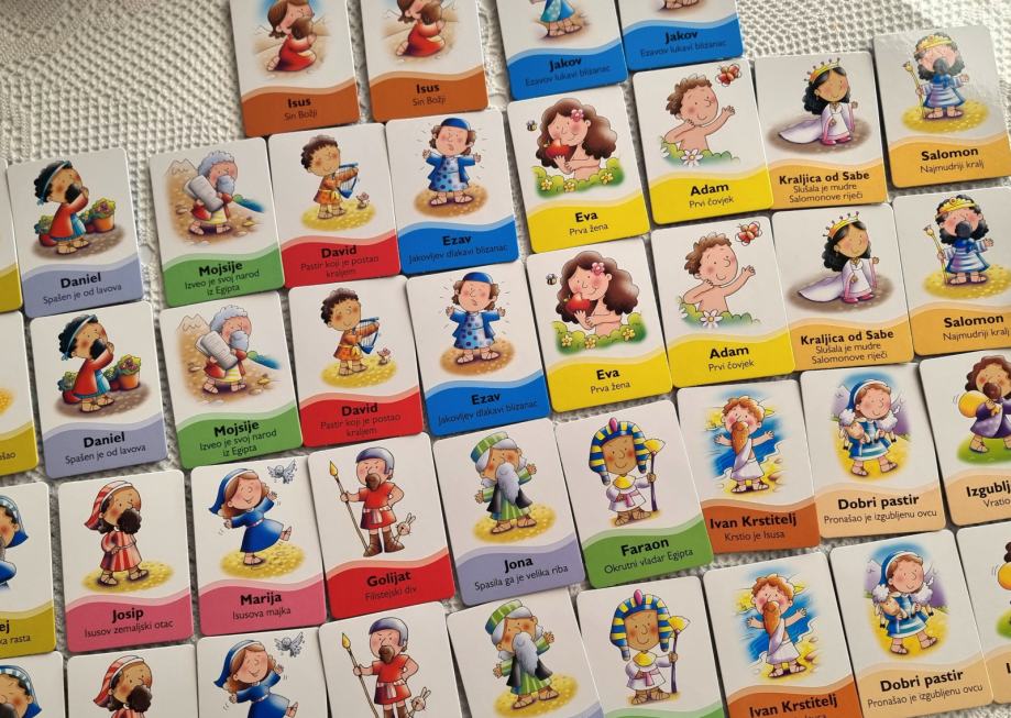 Prodajem memory igru "Biblija - Igra pamćenja" nakladničke kuće Verbum. Igra sadrži 40 karata s likovima i pričama iz Biblije, prikladna za sve uzraste. Odličan način za djecu da kroz zabavu upoznaju biblijske priče i vježbaju pamćenje.