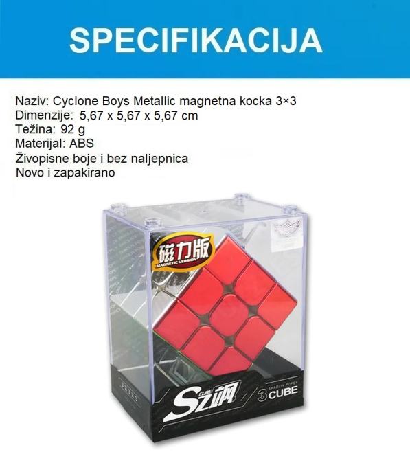 Rubikova magnetna kocka Cyclone Boys Metallic 3x3x3 specifikacije: