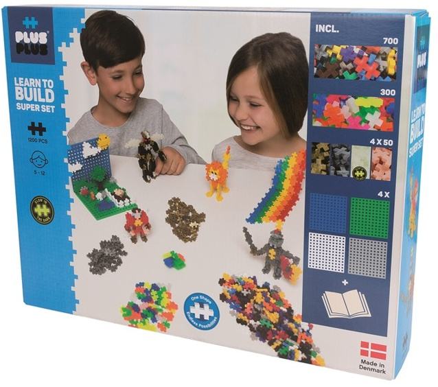 This set contains everything you need to get starting with Plus-Plus. A Guide Book gives step-by step instructions to build flat mosaics and 3D creations - animals, people, buildings and more! The set includes 700 Basic color mix pieces, 300 Neon color mix pieces, 50 pieces of Gold, Silver, Flesh and Glow in the Dark each, 4 Baseplates and a Guide Book. Simplistic shape. Endless possibility! The only tools required are the children's imagination. Plus Plus is a fun, interactive building system where a child can be creative and strengthen motor skills with shape, colour and form.Plus-Plus develops the imagination and creativity of children and appeals evenly to boys and girls predominantly within the ages 3 to 12 years. Once Plus-Plus has been tried out it becomes a kid's favourite. Many hours of intensive play.Plus Plus bricks is made in Denmark of PE (polyethylene) and has successfully passed the normal tests and standards for toys: EN 71-1, 71-2, 71-3. Free of phthalates and PVC.Every single piece of Plus-Plus is produced at our own factory in Holbæk, Denmark. We are very concerned that our product do not contain materials that could harm any child. We ensure this by:Plus-Plus® is constantly being tested and is approved according to EU toy standards: EN 71-1, 71-2, 71-3. These tests are performed by external and independent laboratories.Plus-Plus® is approved for food & beverage (just like bottles for water), so it will not harm a child who would put it in the mouth.Plus-Plus® has clear approval of phthalates, which document that Plus-Plus® is free from phthalates.Plus-Plus® incl. our packaging is free from PVC.Even though we carefully select and trust our vendors who deliver goods to our production, we choose to perform extra controls by facilitating tests of all goods (minimum once yearly), to make sure they meet our criteria to the goods we use for Plus-Plus® production. In these tests all goods are subject to immigration tests to ensure that nothing immigrates to a human who is in contact with our product.