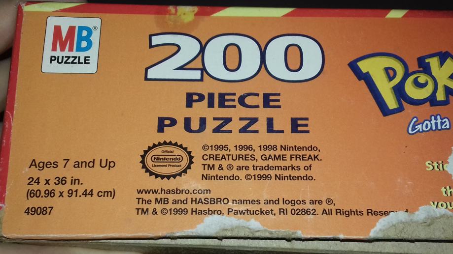 Pokemon 200 Piece Puzzle 24" x 36" Complete Vintage 1999 MB Hasbro, u dobrom stanju.