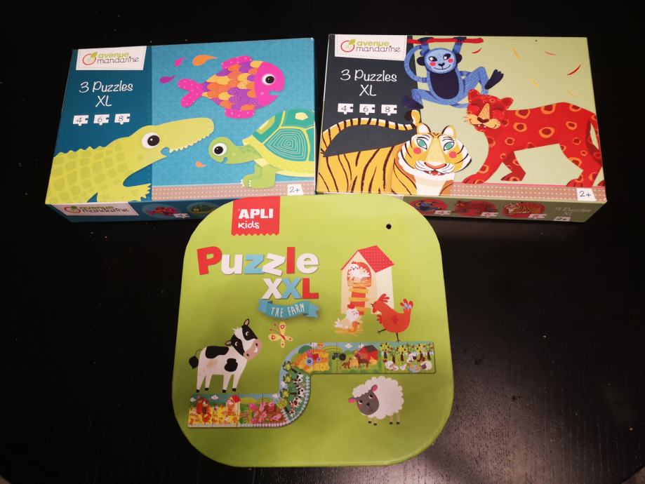 Prodajem 3 seta dobro očuvanih puzla za dob 2+ godina. Ne fali niti 2 puzla i nema oštećenja na njima.