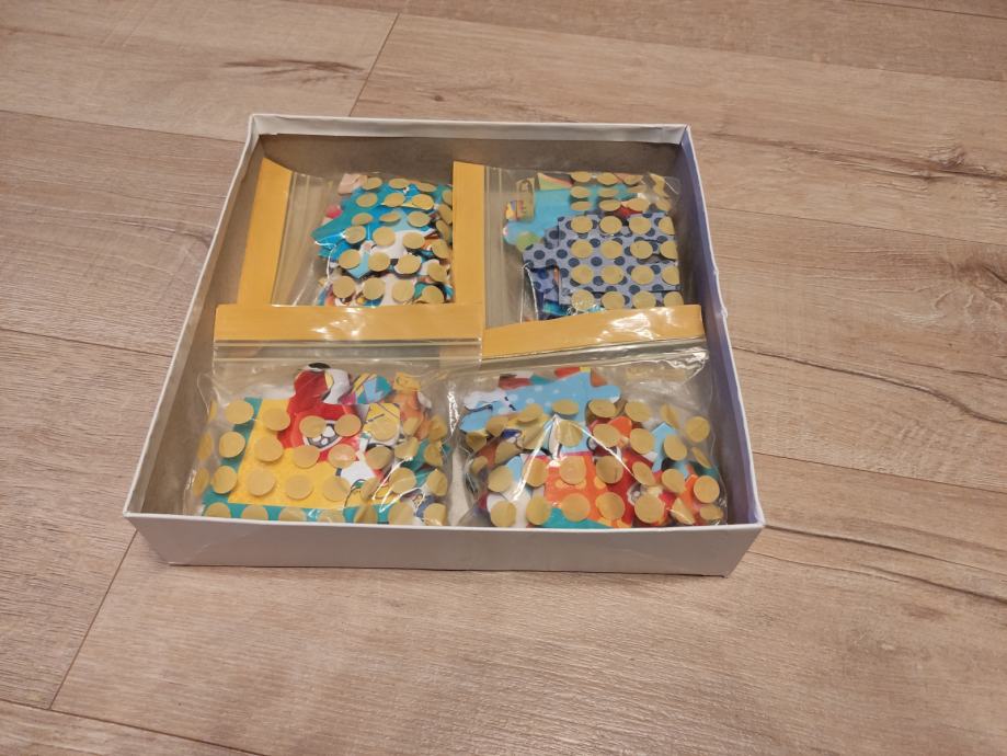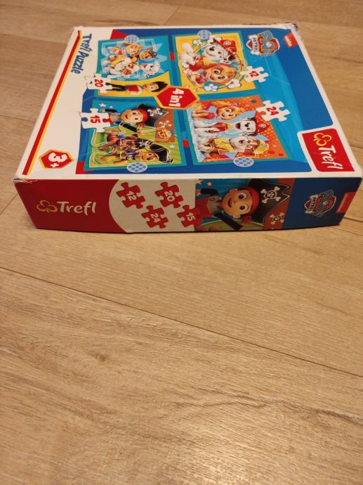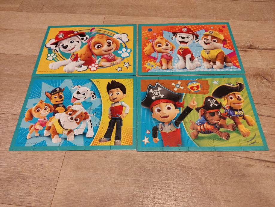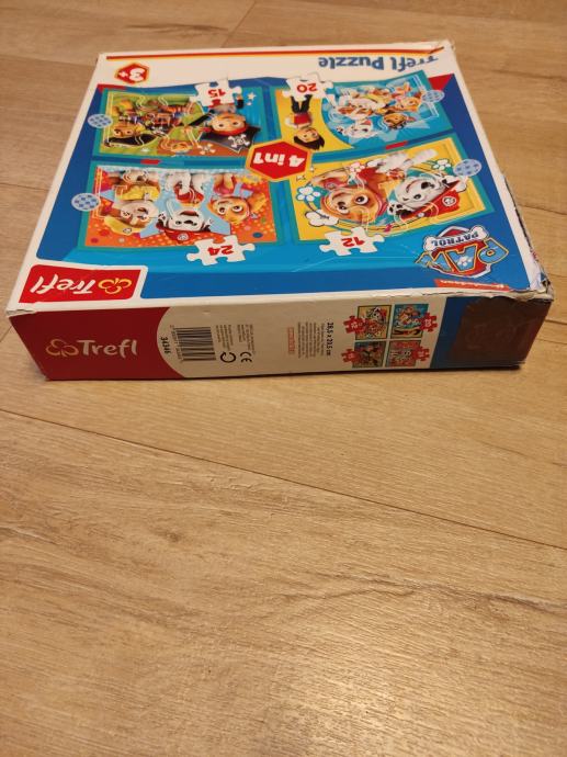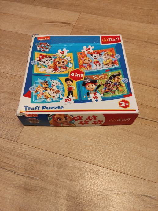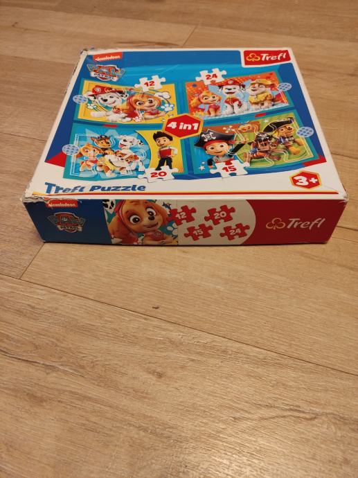 Puzzle 4 u 1. Psići u ophodnji. Kutija je u lošijem stanju. Puzzle su sve na broju, sortirane u vrećicama. Na slikama se vidi složeno. Pogledajte i ostale moje oglase, na više kupljenih stvari popust. U Zagrebu i Karlovcu je moguća primopredaja.