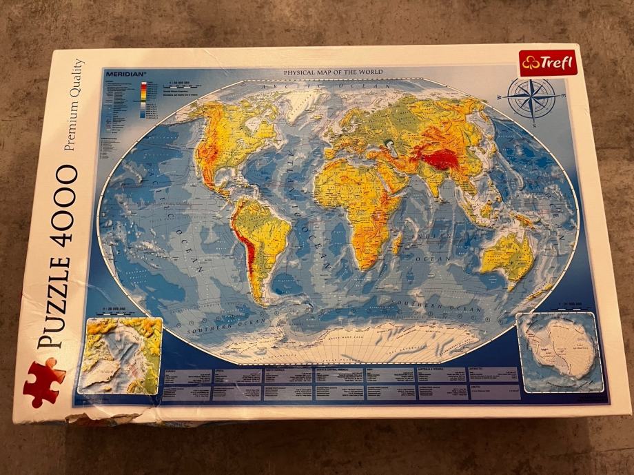 Puzzle od 4000 komada. Svi dijelovi na broju, složeno samo jednom. Kutija je malo oštećena u transportu (naručene su online), no puzzle su sve čitave.