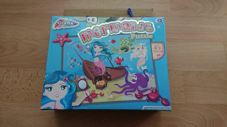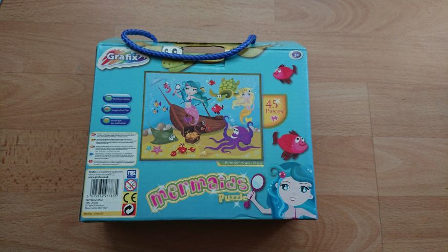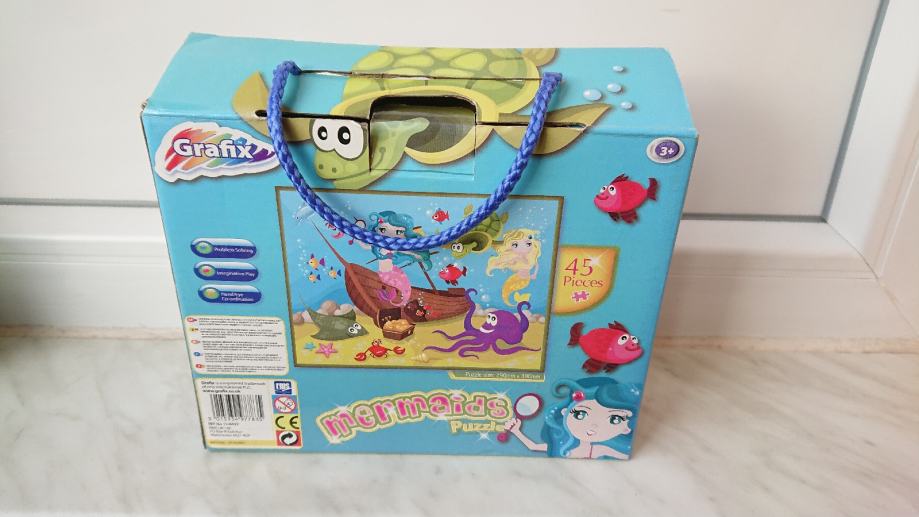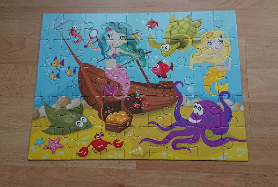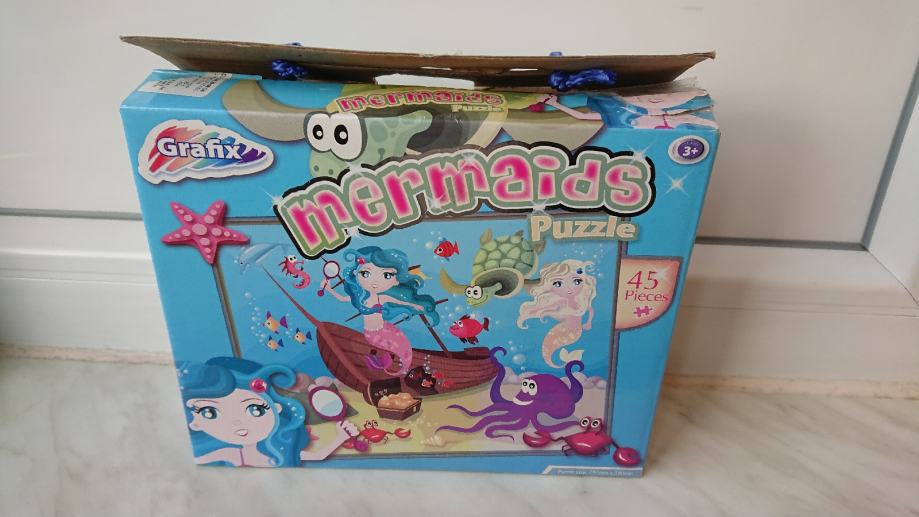 Puzzle sirene, slagalica za djecu sa veselim, šarenim detaljima i morskim životinjama.