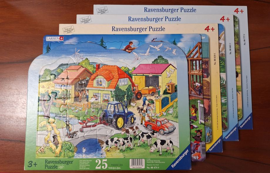 U setu dolaze 4 ravensburger slagalice i 1 larsen slagalica.