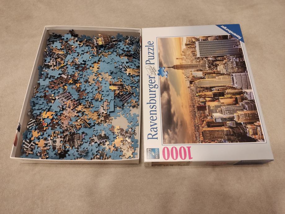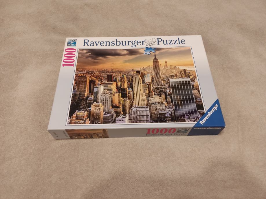 Ravensburger puzzle 1000 komada - New York. Jednom složene i vraćene u kutiju. Nijedna ne fali, vidi se na slici gdje su složene. Pogledajte i ostale moje oglase, na više kupljenih stvari popust. U Zagrebu i Karlovcu je moguća primopredaja.