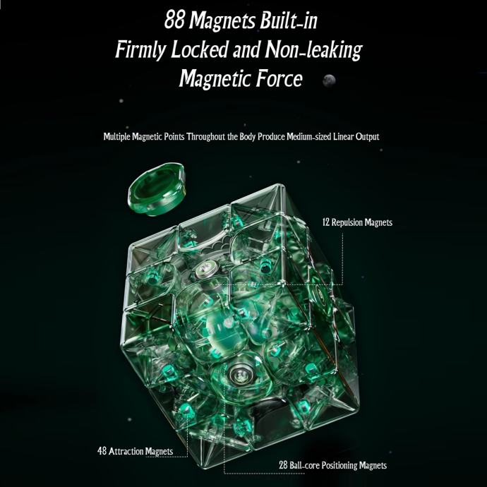 28 magneta unutar jezgre, 48 rubnih magneta i 12 magneta za kontrolu pritiska. Ukupno: 88 magneta za potpuni užitak pri slaganju.