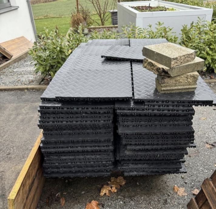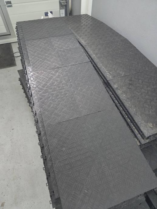 Prodajem podne obloge korištene jedan put na eventu. Sačuvane. Ukupno je cca 250 ploča. Cca 40m2. Prodaje se isključivo u kompletu. Klik sistem, pogodno za garaže, radione. Jednostavne za održavanje i montažu. 0958221500