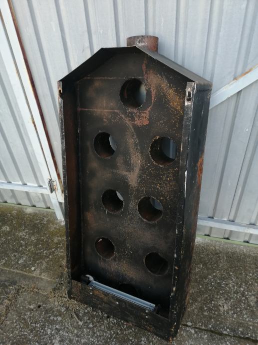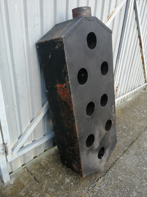 Dimni radijator za grijanje prostora iza zida peći. Prodajem jer sam prešao na centralno grijanje, inače sam grijao prostor od oko 80 m² kaminom Alfa rustik s jedne strane i ovim radijatorom s druge. Ima i ventilator koji nisam ni koristio jer bude prevruće.Debljina lima je 1,5mm. Dimenzije su 1240x500x250mm,dajem i proturnu cijev, koljena nemam.