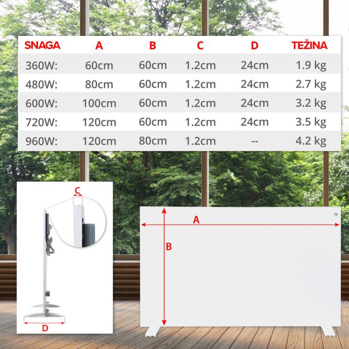 – Za grijanje prostorije do 24m kvadratnih u idealnim uvjetima,