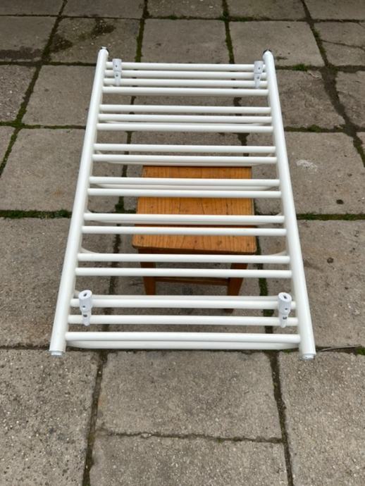 Prodajem kupaonski cijevni radijator (ljestve), marke gorenje. Dimenzije radijatora su 100x60cm. Radijator je montiran novi i korišten je nepune 4 godine od strane bivših vlasnika stana, u vremenskom razdoblju od 2019. do 2023. Prilikom kupnje stana, te renovacije istog, radijator je demontiran zbog ugradnje radijatora većih dimenzija. Radijator je ispravan, očuvan i spreman za danju uporabu. Stanje je vidljivo na priloženim slikama. Uz kupnju radijatora ide orginalni set vijaka i nosača za montažu, Heimeier radijatorski ventil (ispravan), te radijatorska prigušnica.