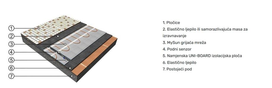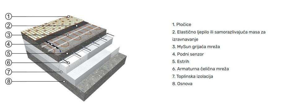 Grijaće mreže MySun moderan su i učinkovit električni IC sustav podnog grijanja. Prikladne su za ugradnju ispod većine podnih obloga i najrašireniji su sustav električnog podnog grijanja. U ovom slučaju grijaći kabeli pričvršćeni su na nosivu mrežu od stakloplastike, što omogućuje brzo i jednostavno polaganje koje mogu obaviti i kućni majstori.