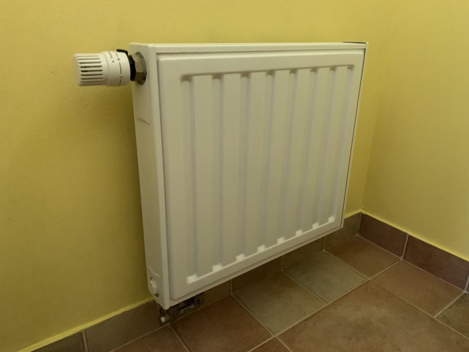 RADSON mali radijator sa termostatom, kao novo! Izvod s donje strane, na strani termostata.