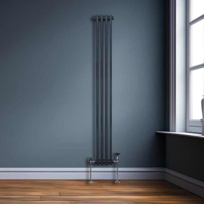 "Unesite toplinu u svoj dom uz naš vrhunski tradicionalni vertikalni radijator s 2 stupa u antracit sivoj boji - savršen spoj bezvremenske elegancije i moderne učinkovitosti.