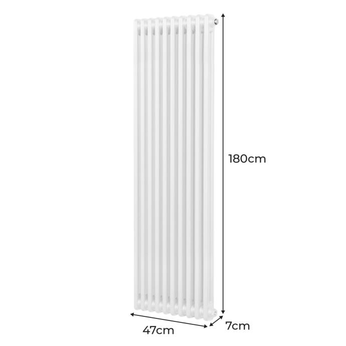 "Unesite toplinu u svoj dom uz naš vrhunski tradicionalni vertikalni radijator s 2 stupa u bijeloj boji - savršen spoj bezvremenske elegancije i moderne učinkovitosti.