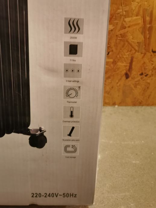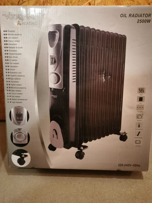 Kao nov, 2500W, 11 rebara, 3 razine topline termostat, zaštita od pregrijavanja.