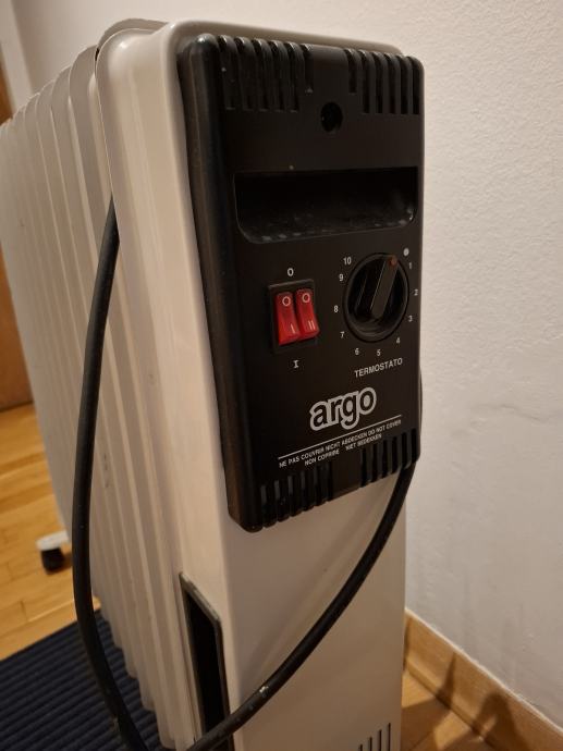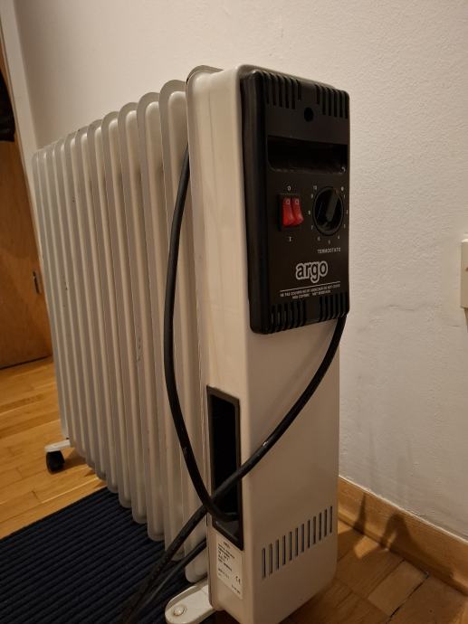 Uljni radijator ARGO, ispravan, 11 rebara + glavni dio, rebro s prekidačima i termostatom.