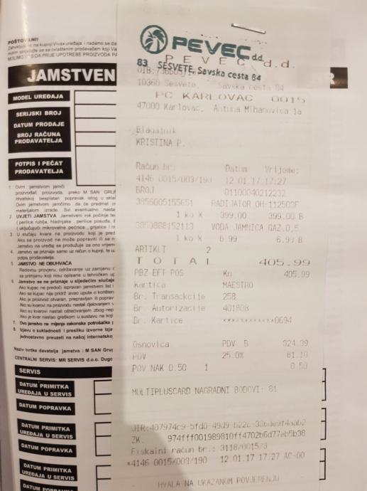 OH-112503F kupljen početkom ove godine. Jednom upaljen. Sa nosačem na kotačićima. Potpuno ispravan. Garancija 24 mjeseca u Pevecu kupljen. Račun priložen.