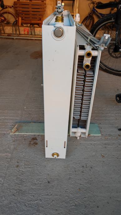 2. 51cm (duljina) x 89cm (visina) x 10 cm (dubina), ima svoje nosače i pripadajuće vijke, nedostaje mu vanjski dio termostatske glave (v. fotografije - košta 10-tak eur u trgovini) - 49 eur