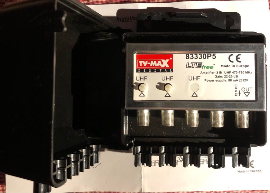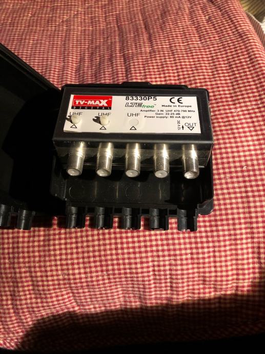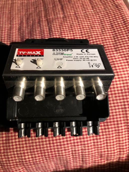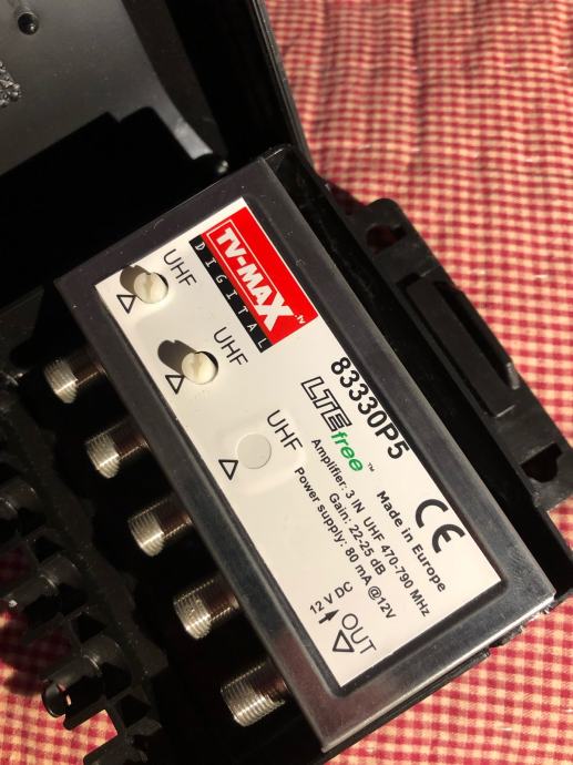 Novo antensko pojacalo sa ulazom za 3 antene sa regulacijom signala, vhf+uhf+uhf, nije koristeno samo isprobano, zastita od upada 5G mreze + napajanje , ispravljac12v , moguce i pojedinacno