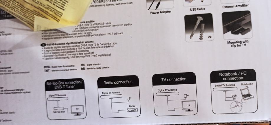 • Uključen adapter za napajanje, 3m koaksijalni kabel, 1m USB kabel, Vanjsko pojačalo, kopča za montažu na TV