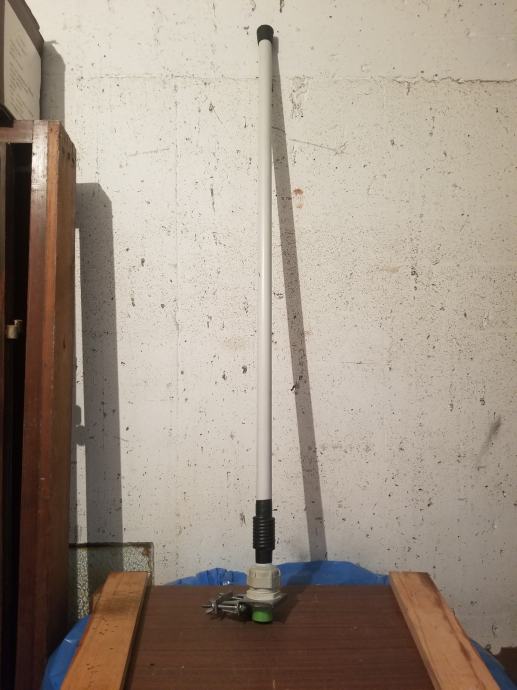 Antena 145 mhz pola lambde . Zaštičena od prodora vode , ukupne visine 110 cm , SWR 1: 1 . Antena radi izvanredno . Postavi je i zaboravi da je na krovu .
