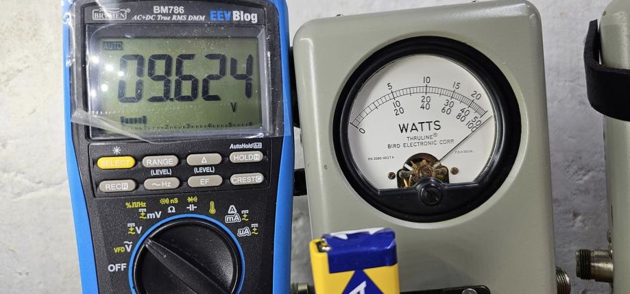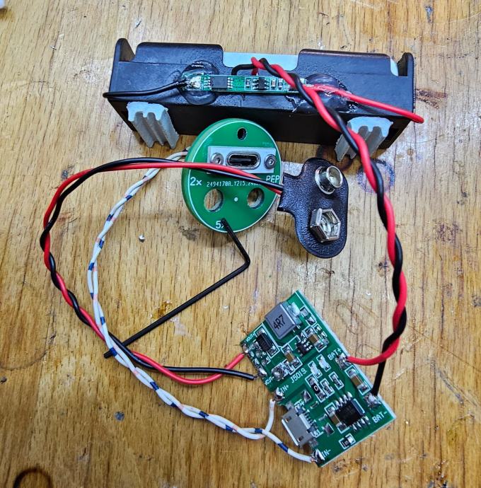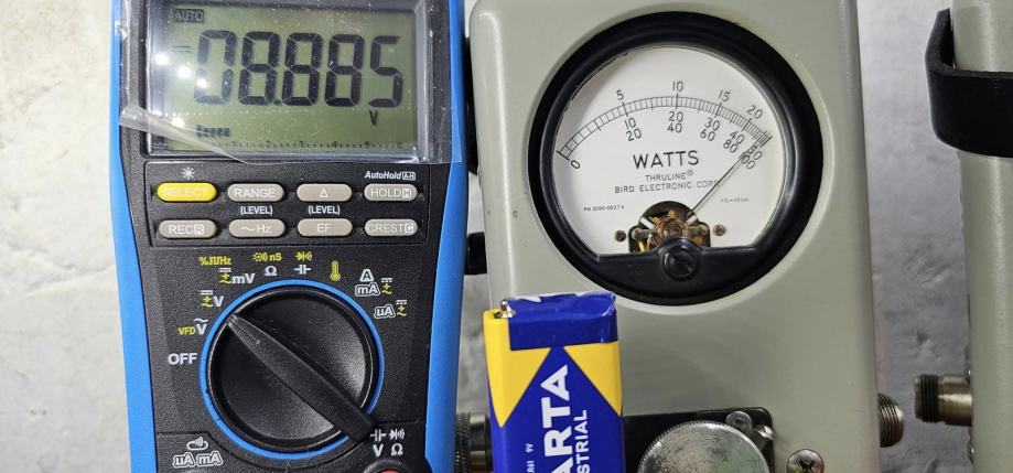 Na slikama vidimo otklon skale s potno novom i ispraznjenom 9v bateriom. U ovom slučaju, izvor napajanja dolazi iz baterije li-ion 18650 preko DC-DC pretvarača postavljen na 9.6 V i koja je punjiva preko USB-C priključka.