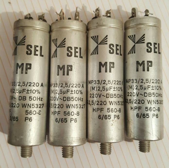 Prodajem 4 kom rabljenih elektrolita sa slike 2,5uF/220V za 4 EUR