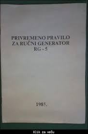 PRIVREMENO PRAVILO ZA RUČNI GENERATOR RG-5 , 1982 GODINA