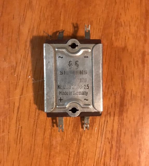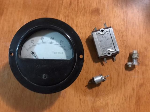Stari instrument,selenski ispravljač "SIEMENS",trimer-kondenzator i zavojnica s feritnom jezgrom.