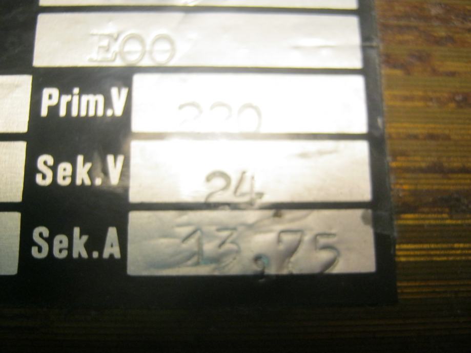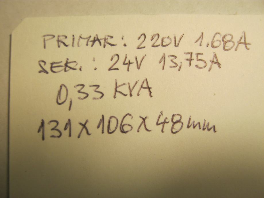 PRIMAR 220V 1.68A. SEKUNDAR 24V 13.75A.
