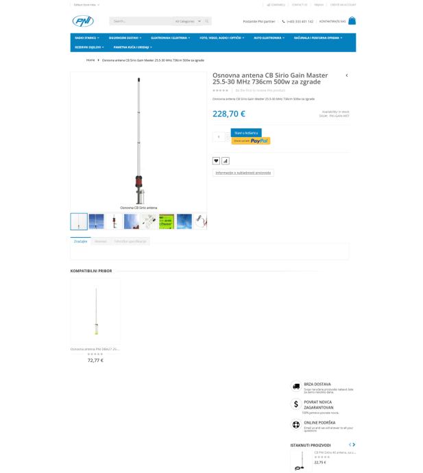 VISINA ANTENE 7,5 m, DOBIT VEĆA ZA 2 db OD KLASIČNE 5/8 LAMBDA ANTENE. UPOTREBLJIVA OD 25 DO 30 MHz, BEZ ANTENSKOG TUNERA. NIZAK KUT ZRAČENJA, IDEALNA ZA DX RAD.