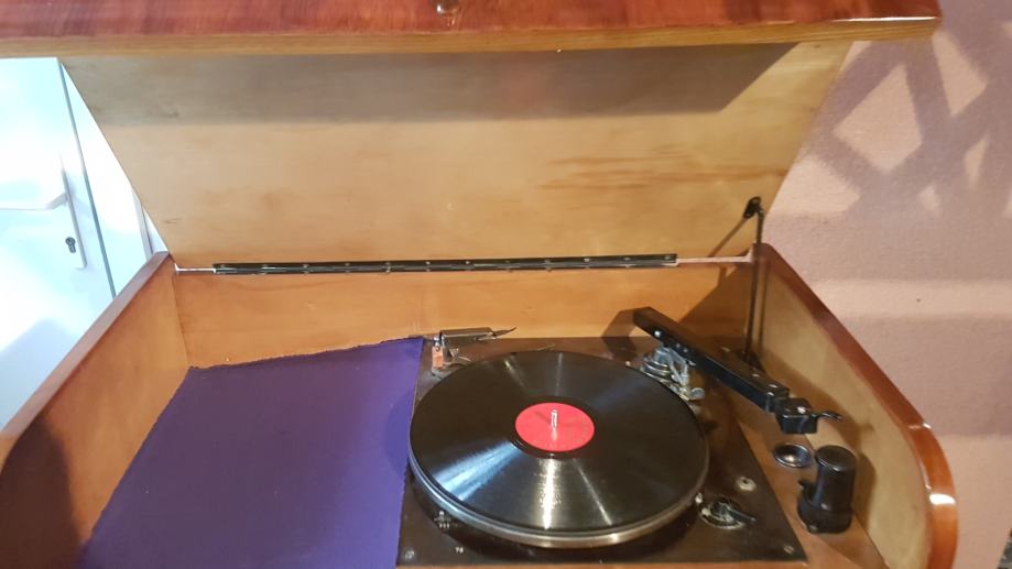 Nogice od vitrine isto kao i kompletna unutrašnjost su u super stanju. Gramofon je također Blaupunkt.