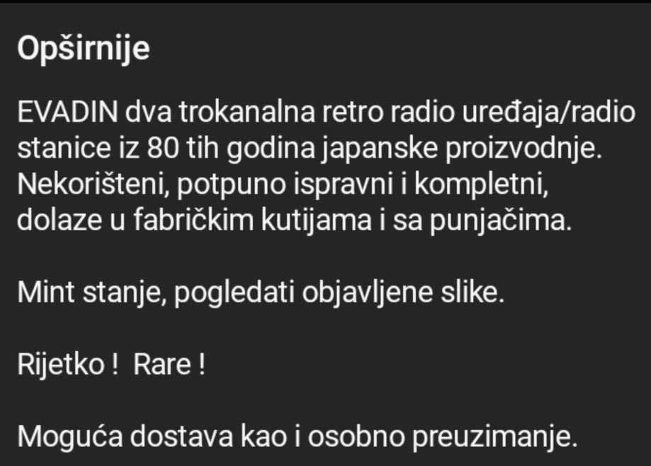 EVADIN dva trokanalna retro radio uređaja/radio stanice iz 80 tih godina japanske proizvodnje.