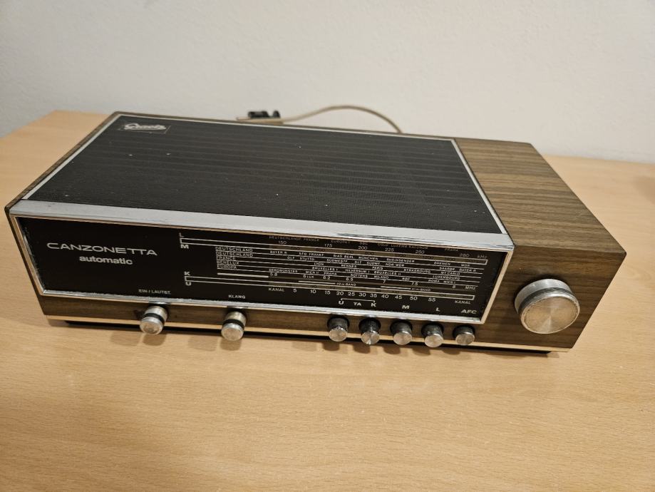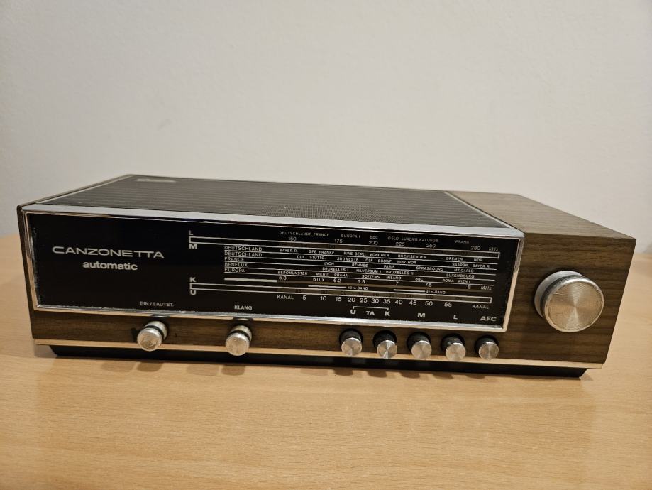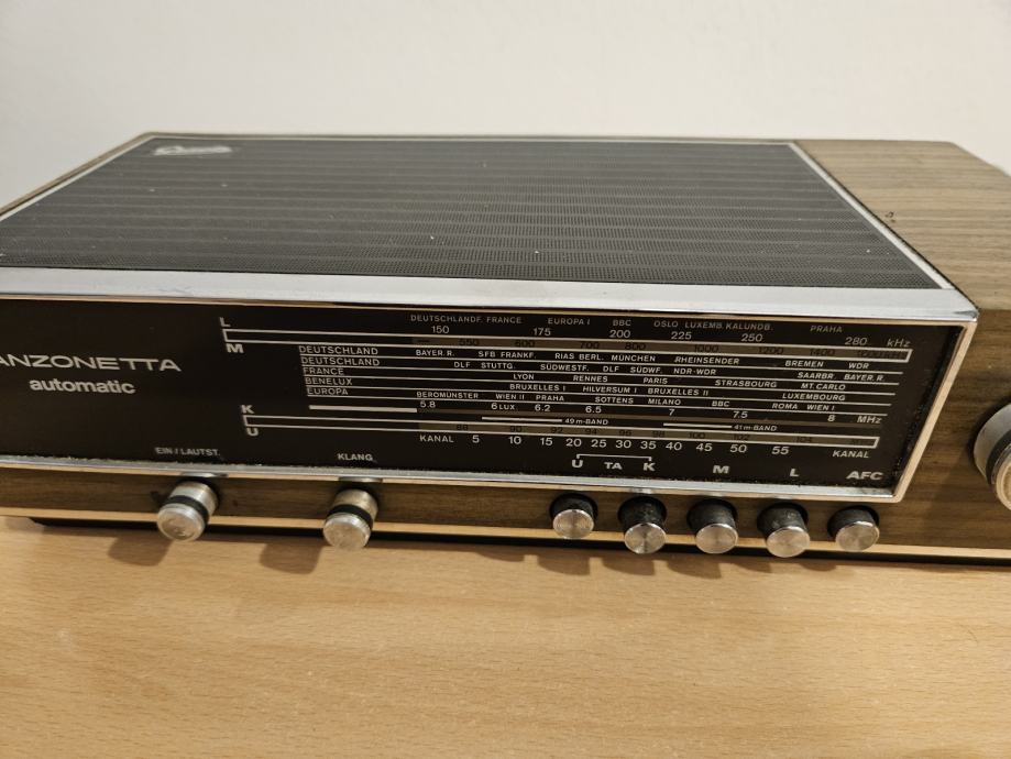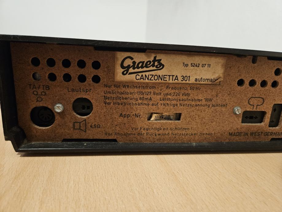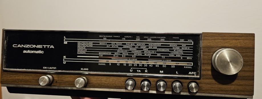 Prodajem rabljeni Graetz Canzonetta 301 radio uređaj u dobrom stanju. Klasični model s drvenim elementima i elegantnim retro dizajnom koji će oduševiti svakog kolekcionara. Uređaj ima funkcionalne kontrolne gumbe i jasan prikaz frekvencija na prednjoj ploči.