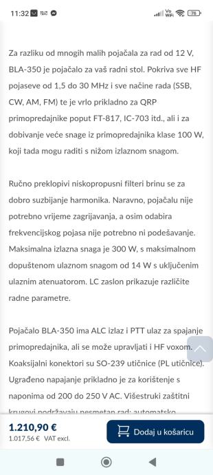 Prodajem navedeno pojačalo 1.8-30 MHz po cijeni od 800eur pojačalo je nekorišteno u TOP stanju moguća zamjena za Icom IC7100