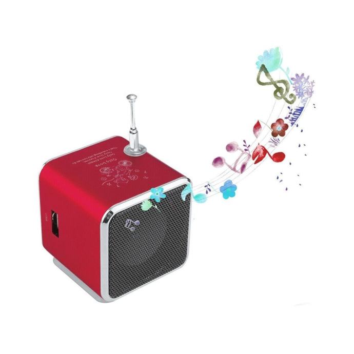 Prijenosni mini bežični Bluetooth 5.0 zvučnik s FM radiom, LED osvjetljenjem, glazbenim playerom, čitačem Micro SD kartica, USB-om, AUX-om, LCD zaslonom, ugrađenom baterijom za do 10 sati reprodukcije, automatskim pretraživanjem stanica, čistim zvukom, visokom glasnoćom, kompatibilan s telefonom, prijenosnim računalom, USB-om, praktičnim mobilnim zvučnikom za vrt, ured, putovanja, plažu, roštilj, zabavu, logorsku vatru, lagan i kompaktan, 3 W, CE, crvene boje