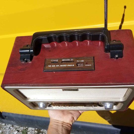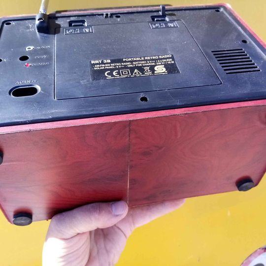 Prenosivi radio prijemnik, 4in1, RETRO dizajn, bežicna Bluetooth veza, MP3 reprodukcija, žicani audio ulaz ( AUX IN ), 3- pojasni AM / FM / SW radio. Volume indikator 2 x 5 LED, klasicna drvena zvucna kutija sa ruckom za nošenje. Višestruko napajanje: ugradena baterija, 4 x D LR20 1,5V baterije, vanjski adapter 6V, kabel za napajanje AC.